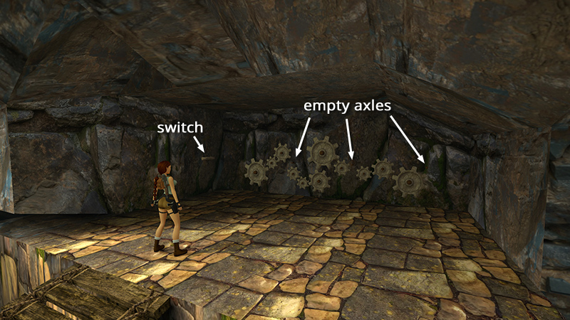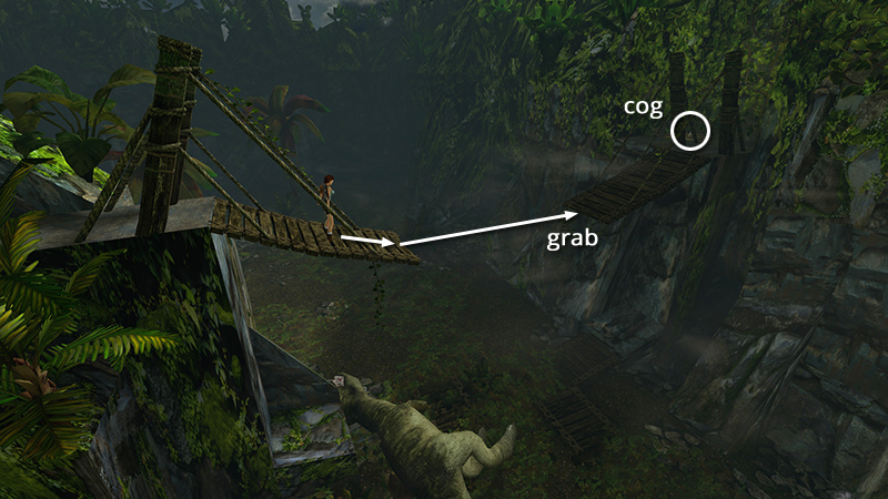 OBJECTIVES: Descend to the valley and find three machine cogs. Use these to repair an ancient machine at the top of the stream, which will reveal the entrance to the next level.