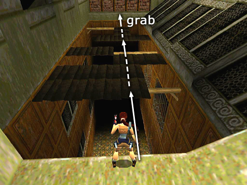 NOTE: You can't reach the white ledge above the stage yet, so don't tire Lara out trying to jump from the slope to grab it.