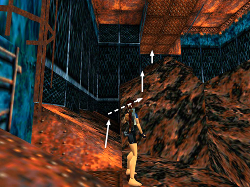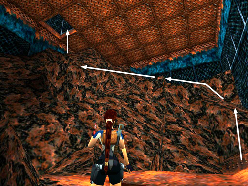 NOTE: If you just can't manage the fancy finger work, you can download a Windows or Macintosh savegame file with Lara on the other side of the burners. Save files can be found here; instructions for using them are here. Or use the level skip cheat code.