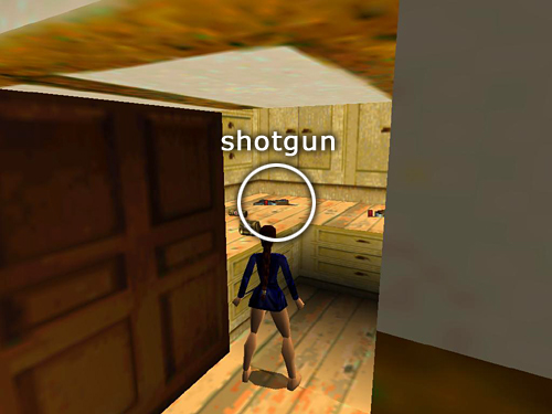 As soon as you gain control, hurry around the bed and use the GUN CUPBOARD KEY, which is already in your inventory, to unlock the closet door. (screenshot) You'll notice the DAGGER OF XIAN is also in your inventory. Unfortunately you can't use the dagger to change Lara into a dragon. So you'll have to fight the bad guys the old fashioned way. Inside the closet, in the far left corner, is the SHOTGUN (1) along with 8 boxes of shells (2-9). (screenshot) There's more ammo—28 boxes of shotgun shells in 3 separate pickups (10-37)—along with 2 packs of flares, plus 1 small and 2 large medi packs (38-42). You may not have time to pick them all up at first, so go for the gun first.