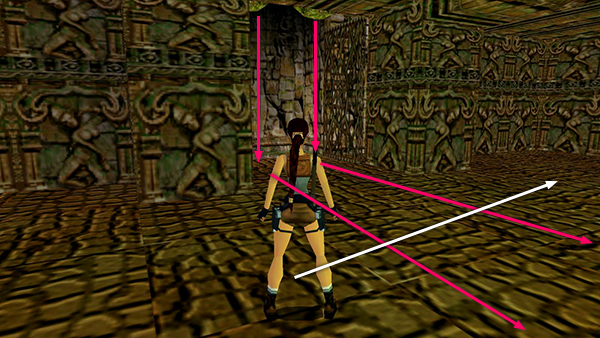 A cut scene follows: Lara emerges from the temple and sees Tony, the psychotic blond explorer, rafting down the river. She draws her weapons and fires. He laughs and makes some dramatic gestures, and the temple begins to crumble around her. Lara dodges falling stone blocks as Tony gets away. She starts to follow on foot then notices a quad bike nearby.