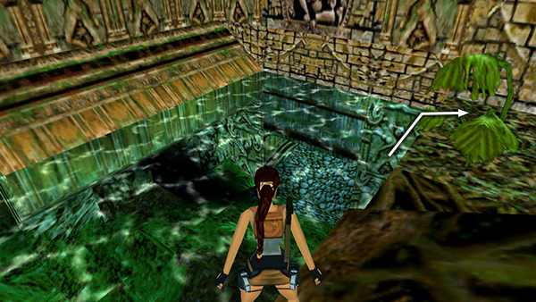 NOTE: If you miss a jump while exploring the treetops, you can get back up into the branches using the shortcut described at the beginning of the level. (screenshots) If you fall into the piranha-infested pool, either reload and try again, or try and maneuver Lara into the corner below the trees near the start of the level and climb out on the bank. (screenshot)