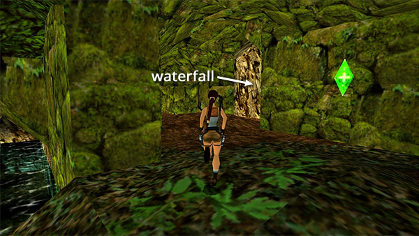 WATERFALL AND LEVEL EXIT: Once you're back on the other side of the river, head for the well-lit opening ahead on the right. (screenshot)