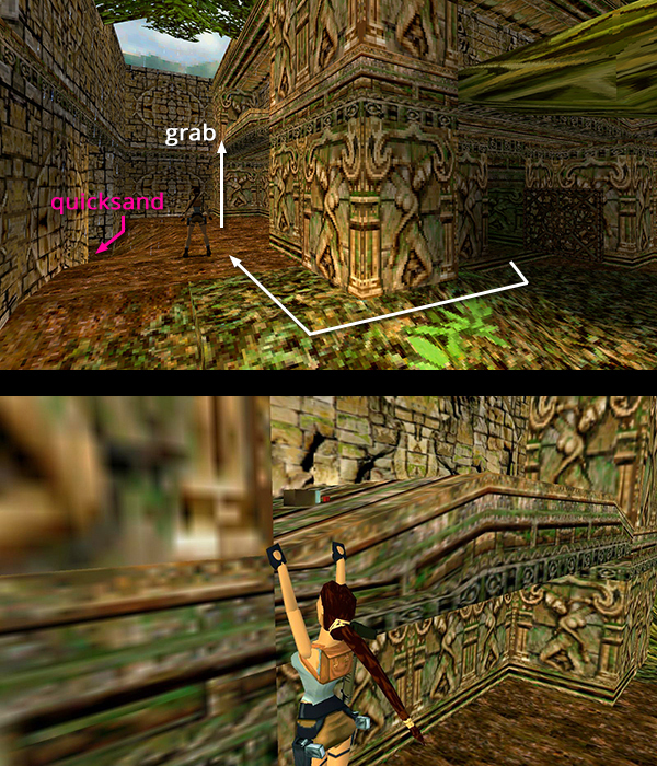 NOTES: If you're struggling with the last jump and are playing the classic game using the widescreen patch, you may want to temporarily revert to standard aspect ratio (1024x768, etc.). This can make a big difference here. Thanks to MrMyrddraal, for suggesting this in a comment on my video. If you're playing the remastered game, modern controls might help, though I was able to all of the jumps, as described here, using tank controls.