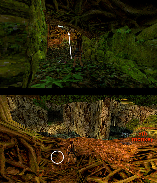 Again, all of this is covered in the main guide. At this point, you should have a total of 3 secrets, 4 crystals, 13 pickups, and 8 kills (the ones in the main walkthrough plus bonus monkey #5).