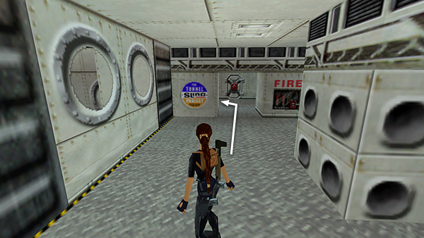 NOTE: If you missed secret #3, you'll be able to see the grenade launcher and other pickups through one of the windows in the SPECIMEN ROOM. It's not too late to go back for these items. Return up the ramp to previous room, jump in the pool, and swim through the tunnel to the previous area. (screenshot) Then follow the walkthrough above to get the secret.