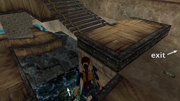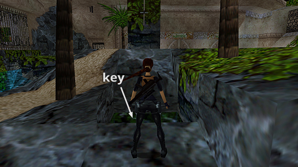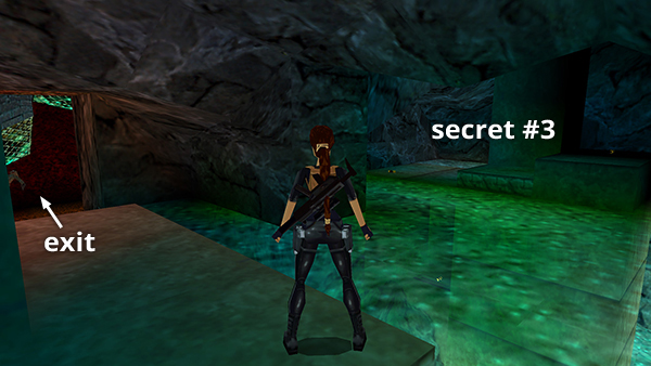 NOTE: If are unable to retrieve the key from the piranha pool, you can download my save file or use the alternate method for accessing secret #3 using the corner bug, as described in a footnote.