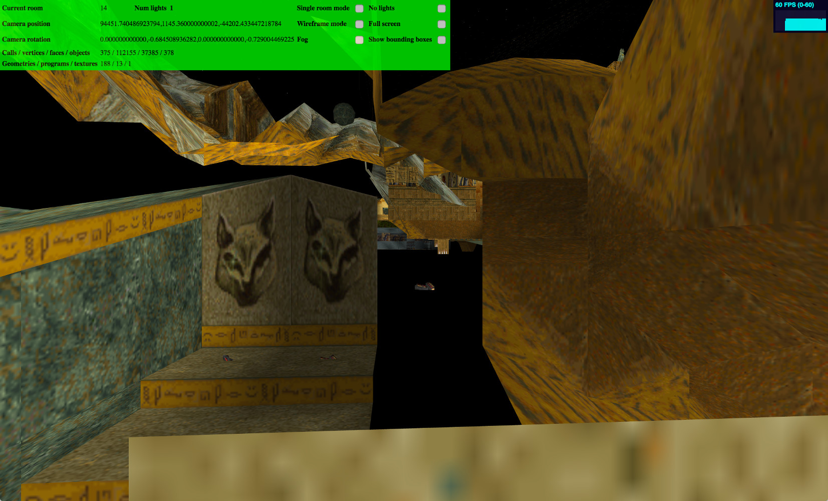 There are also some changes in the terrain there after killing these 2 mummies in the trap room: On the blue balcony level, Lara can go right into the room near the steps going up, without having to circle all the way around, and the cat statue's tongue will already be extended.